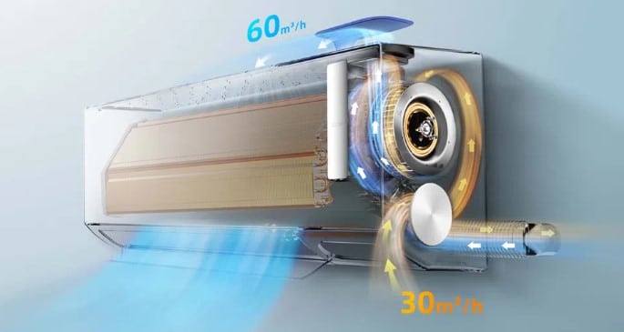 So vzduchovým motorom TCL získate neuveriteľný výkon v prívode čerstvého vzduchu. Výkonný motor v klimatizácii FreshIN dodáva až 60 metrov kubických čerstvého vzduchu za hodinu.